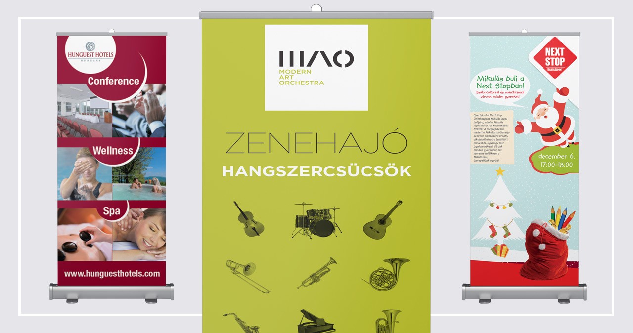 Gyorsan felállítható kompakt reklámhordozó, melyet bárhová magaddal vihetsz? Roll-up-gyártás rövid határidővel és nagy tapasztalattal a Regiszter Nyomdánál!